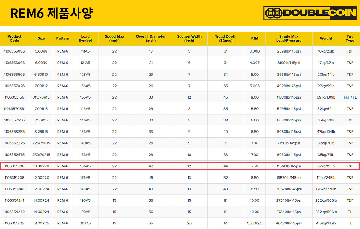 더블코인 REM6 10.00/R20 (레이디얼 타이어)