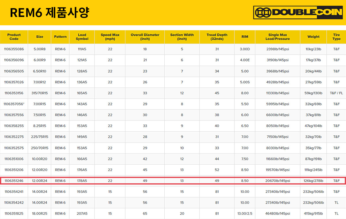 더블코인 REM6 12.00/R24 (레이디얼 타이어)