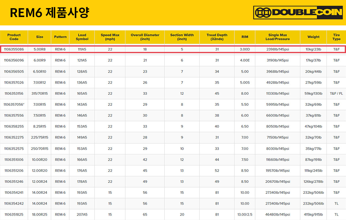 더블코인 REM6 5.00R8 (레이디얼 타이어)