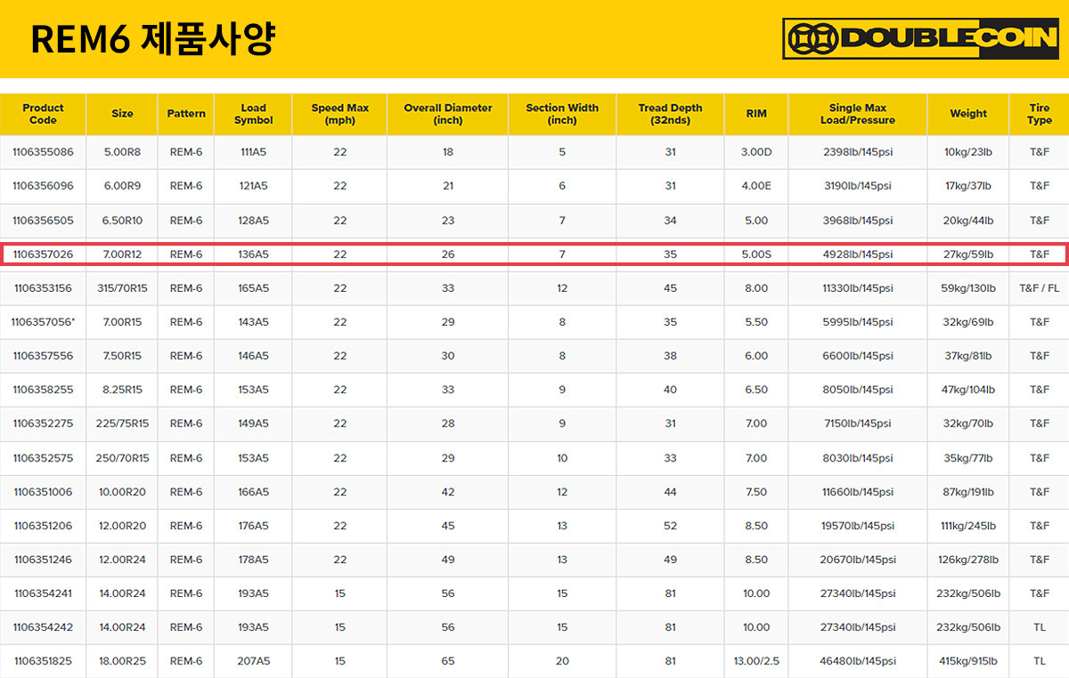 더블코인 REM6 7.00R12 (레이디얼 타이어)