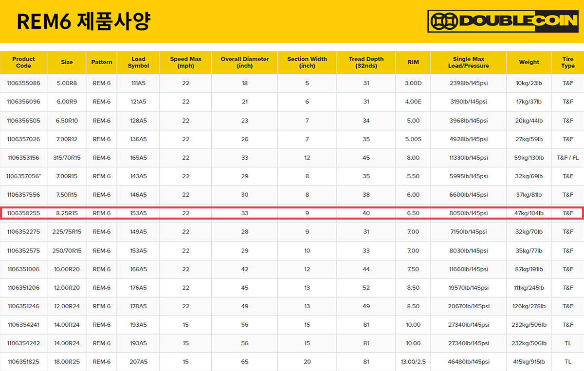 더블코인 REM6 8.25R15 (레이디얼 타이어)