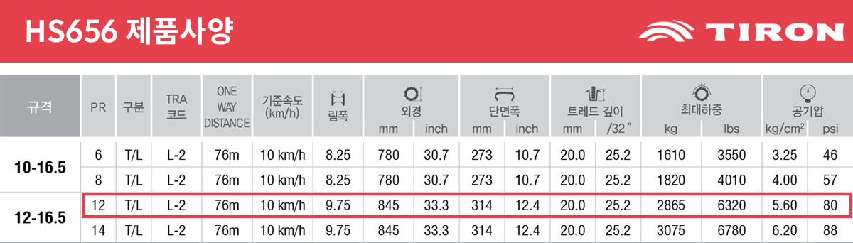 흥아타이어 HS656 12-16.5 굴삭기 타이어
