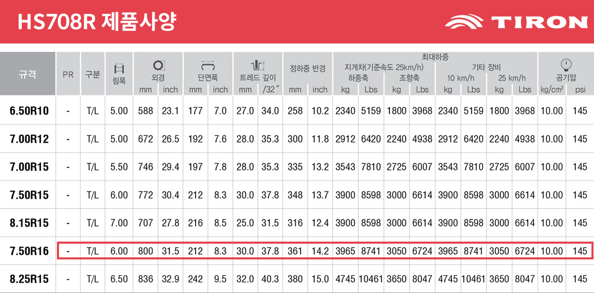 흥아타이어 HS708 7.50-R16 (레이디얼 타이어)